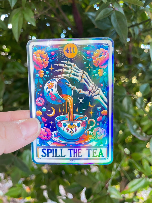 Tarot Card Spill The Tea Sticker - Holographic - Gossip - News