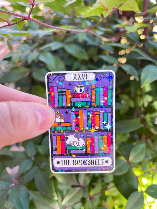 Tarot Card The Bookshelf Sticker - Book Lover - Holographic - Booktok - Cat Lover
