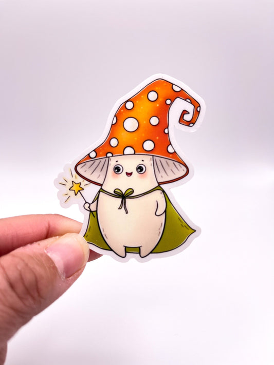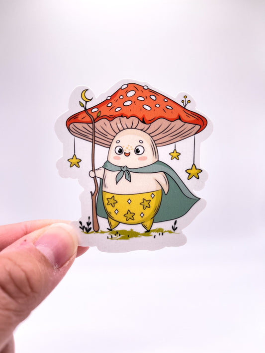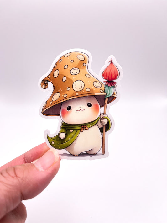 Cute Mushroom Wizard Guy Sticker - Cottage Core - Mushrooms