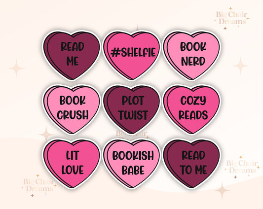 Cute Bookish Candy Heart Stickers Set - Valentine's Hearts Stickers - Valentine's Gifts - Booktok - Holographic