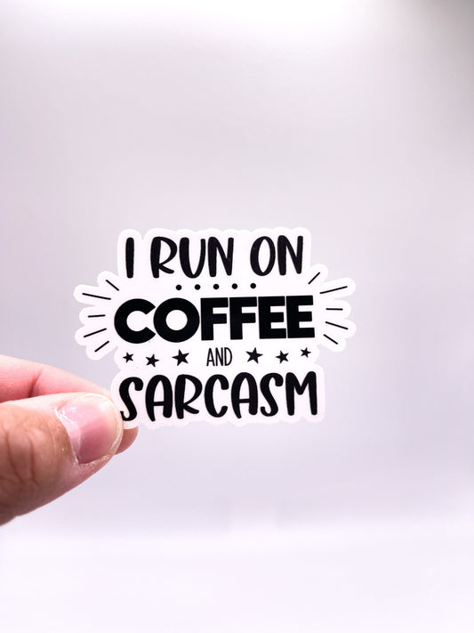 I Run on Coffee and Sarcasm Sticker - Coffee Lover - Coffee Addict - Coffeetok