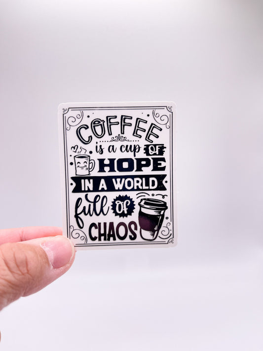 Coffee is a Cup of Hope in Chaos Sticker - Coffee Lover - Coffee Addict - Coffeetok