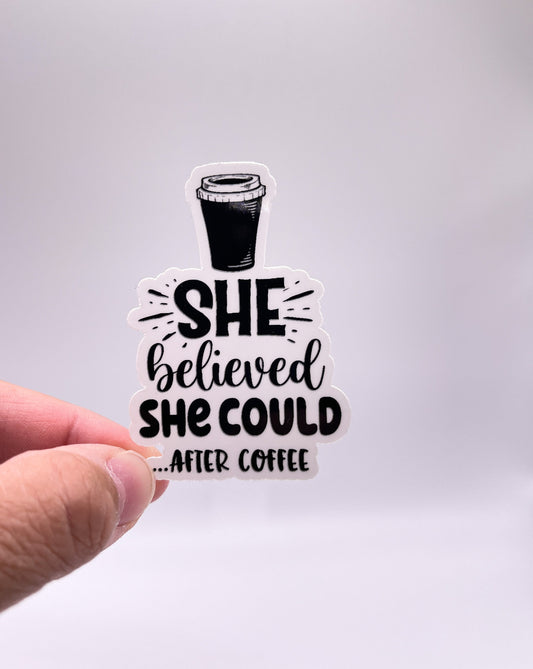 She Believed She Could AFTER Coffee Sticker - Coffee Lover - Coffee Addict - Coffeetok
